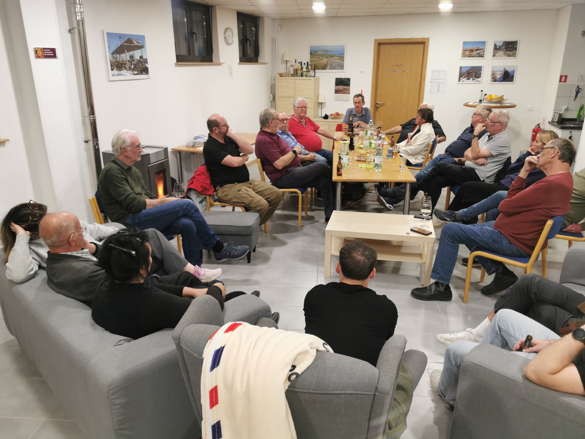 Nach dem Gottesdienst zog die Gruppe in das Haus. Norbert Scheiwe als Vorsitzender begrüßte die Gäste offiziell im Haus und wies auf die Chronik hin, die in spanischer und deutscher Sprache für alle Gäste zur Verfügung steht. Wolfgang Almstedt, der zweite Vorsitzende, lies in seiner Ansprache noch einmal die vergangene Zeit Revue passieren und dankte allen Partnerinnen und Partnern, den Mitgliedern und dem Vorstand für die bisher geleistete Arbeit. Er gab ebenfalls einen Ausblick in die Zukunft und die kommenden Planungen für das Haus. Danach konnten sich die Gäste an den vom El Trasgue servierten Tappas und Pizzas von Giovanni stärken und die Gelegenheit des internationalen Austausches nutzen. Der Abend klang dann mit Gesprächen, Musik, Gesang und Tanz im Haus aus.