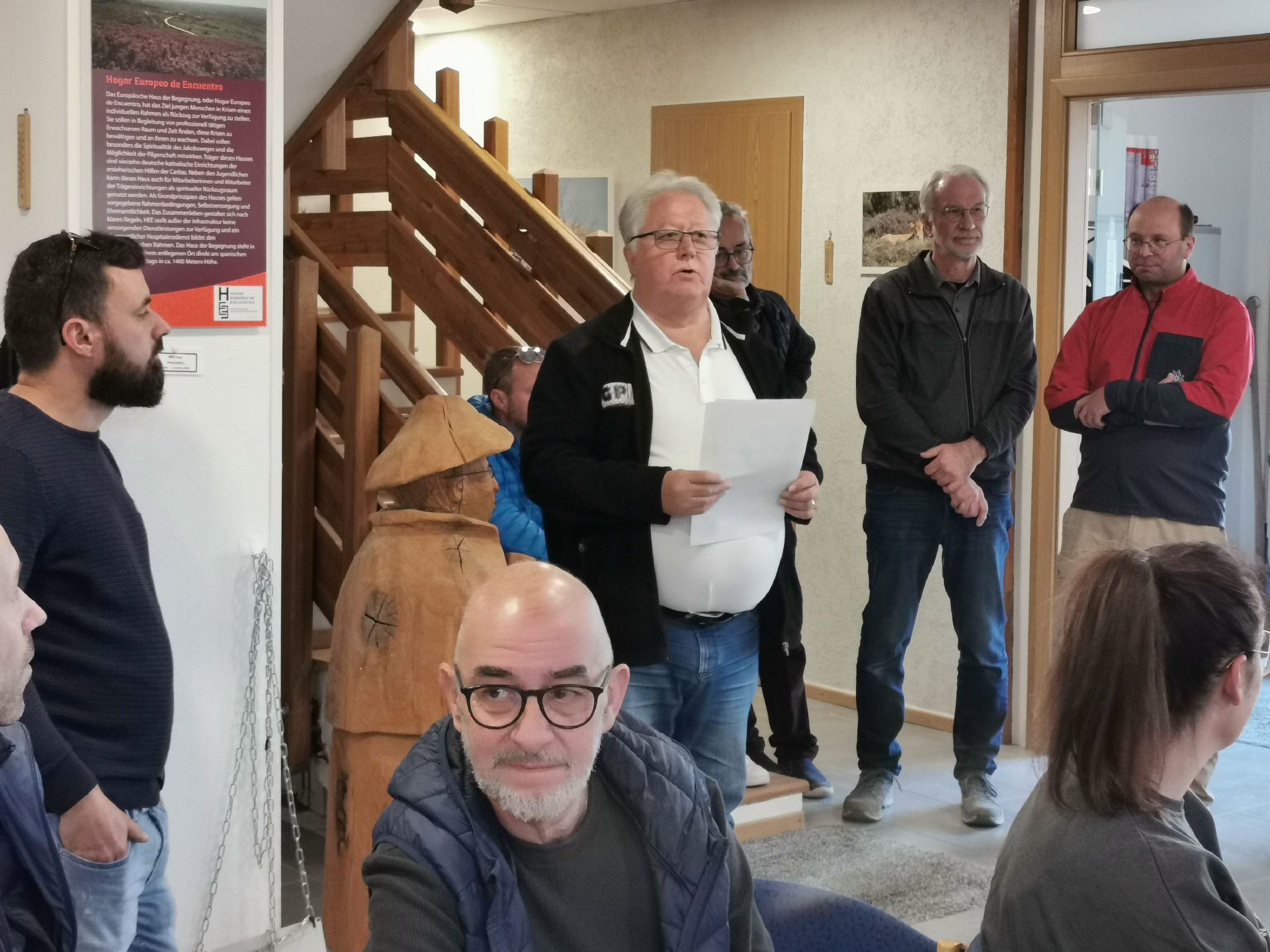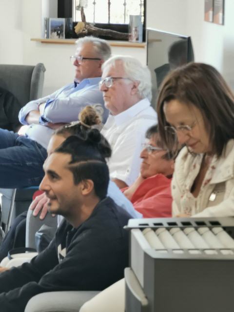 Nach dem Gottesdienst zog die Gruppe in das Haus. Norbert Scheiwe als Vorsitzender begrüßte die Gäste offiziell im Haus und wies auf die Chronik hin, die in spanischer und deutscher Sprache für alle Gäste zur Verfügung steht. Wolfgang Almstedt, der zweite Vorsitzende, lies in seiner Ansprache noch einmal die vergangene Zeit Revue passieren und dankte allen Partnerinnen und Partnern, den Mitgliedern und dem Vorstand für die bisher geleistete Arbeit. Er gab ebenfalls einen Ausblick in die Zukunft und die kommenden Planungen für das Haus. Danach konnten sich die Gäste an den vom El Trasgue servierten Tappas und Pizzas von Giovanni stärken und die Gelegenheit des internationalen Austausches nutzen. Der Abend klang dann mit Gesprächen, Musik, Gesang und Tanz im Haus aus.